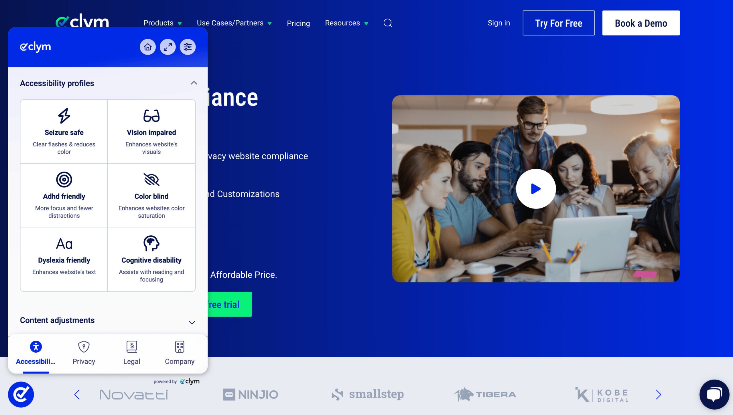 Clym is an all-in-one digital compliance solution that helps organizations manage privacy, accessibility, transparency, and governance in one place.