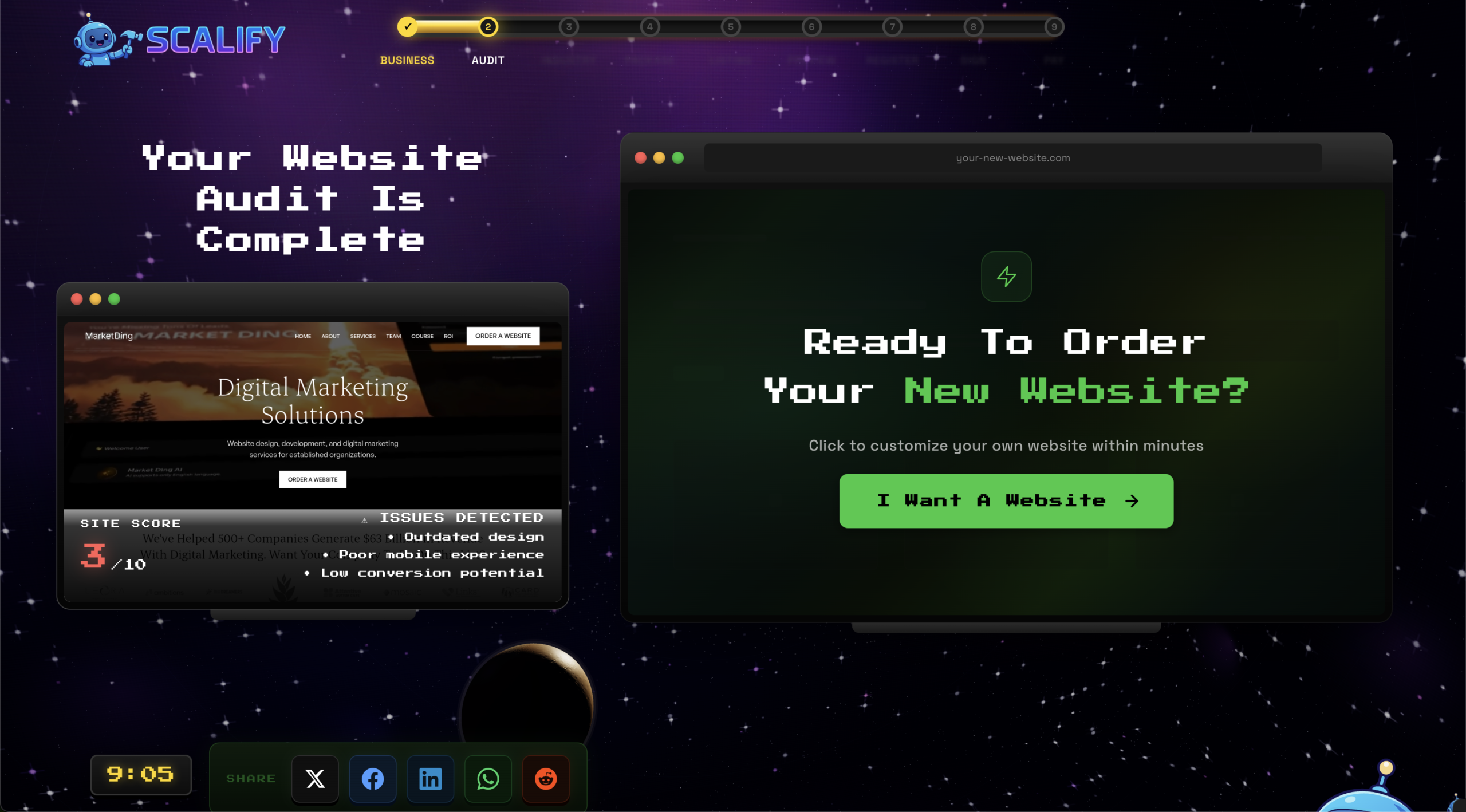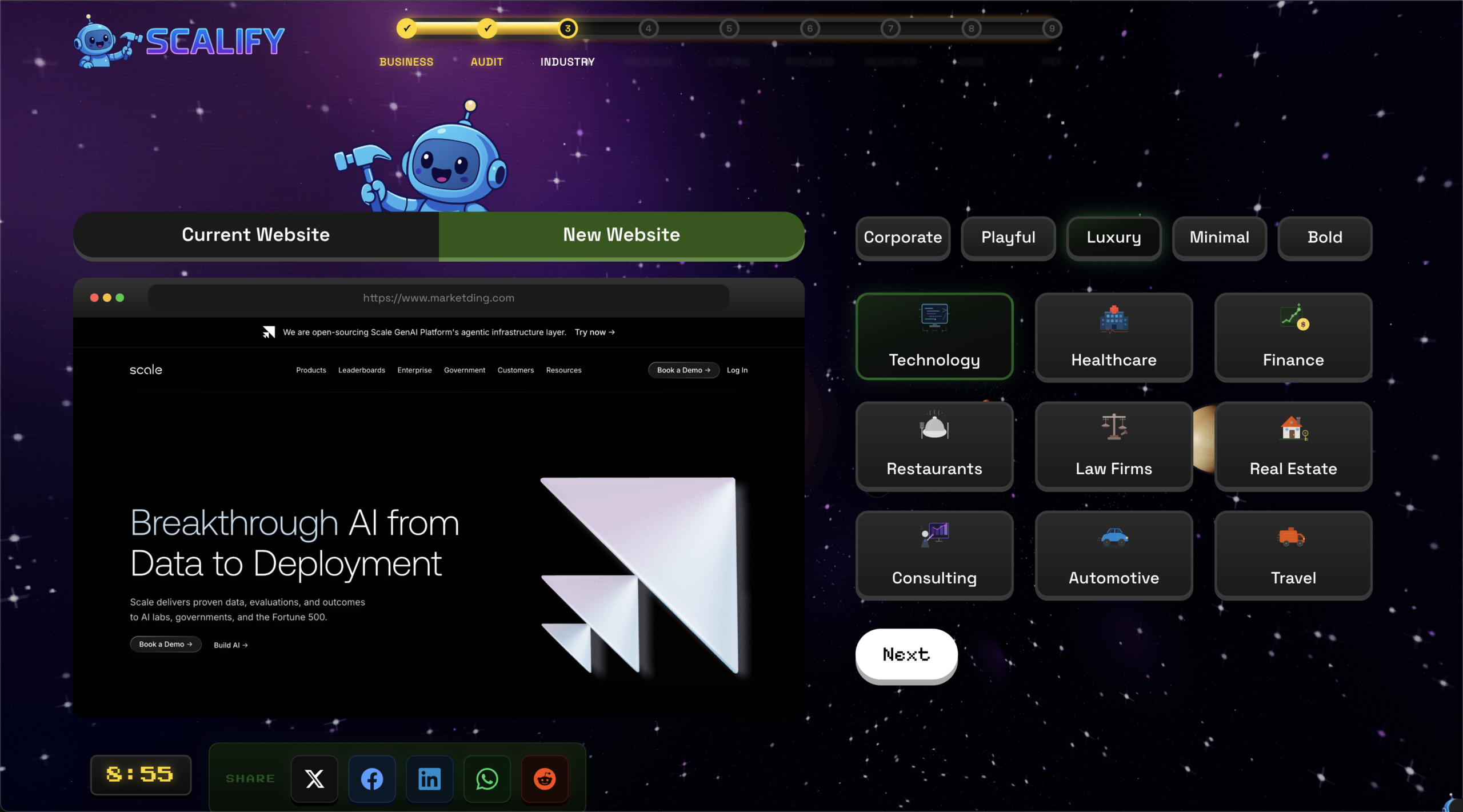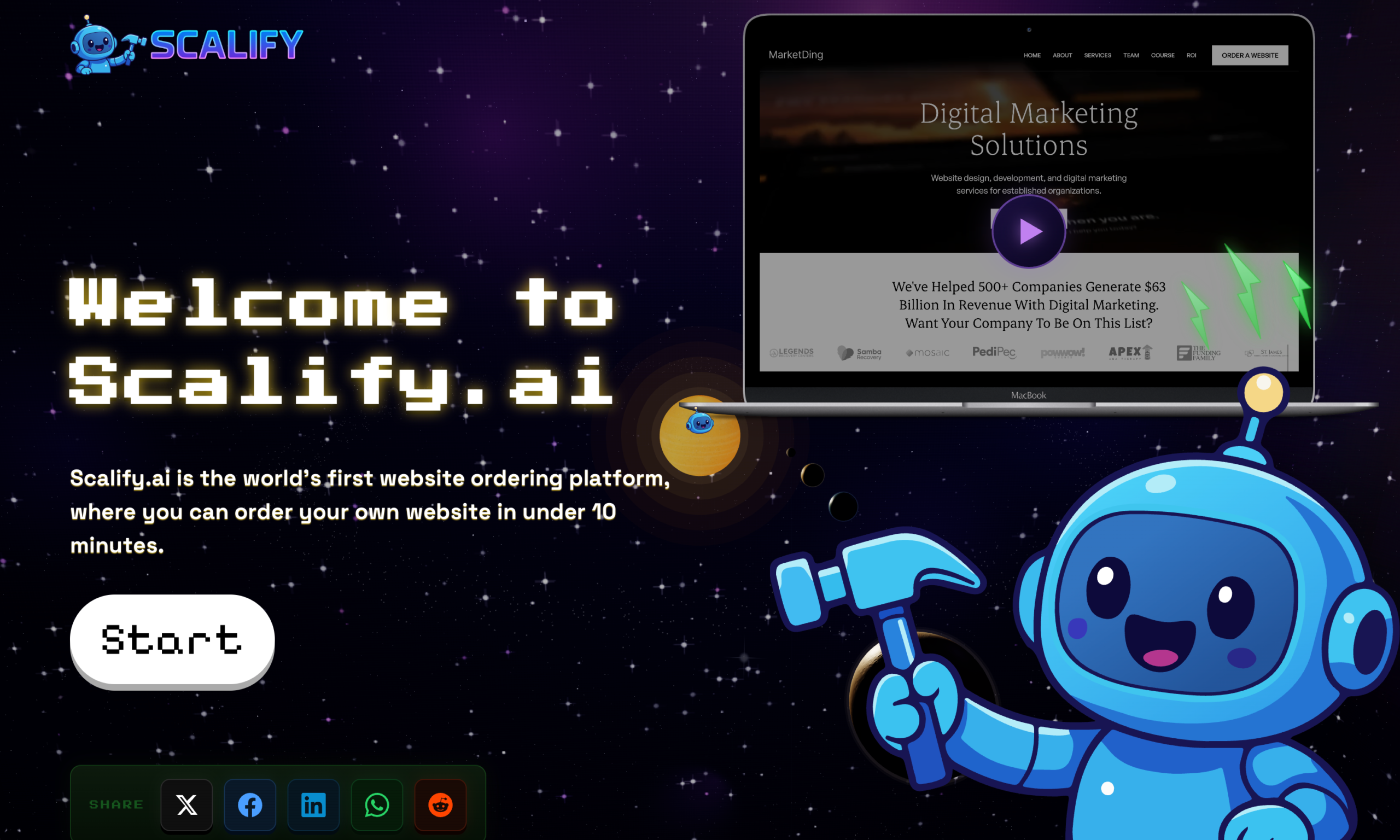 Scalify.ai is the world's first website ordering platform, where you can order your own website in under 10 minutes.